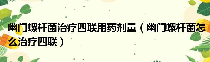 幽门螺杆菌治疗四联用药剂量(幽门螺杆菌怎么治疗四联)