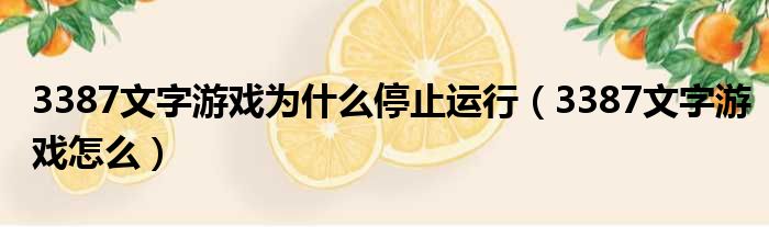 3387文字游戏为什么停止运行(3387文字游戏怎么)