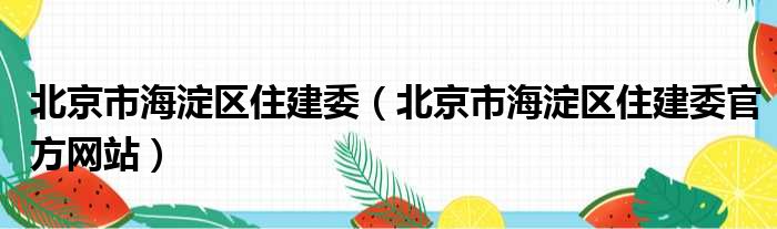 北京市海淀区住建委(北京市海淀区住建委官方网站)