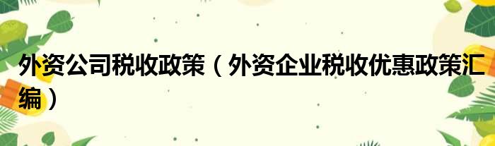 外资公司税收政策(外资企业税收优惠政策汇编)