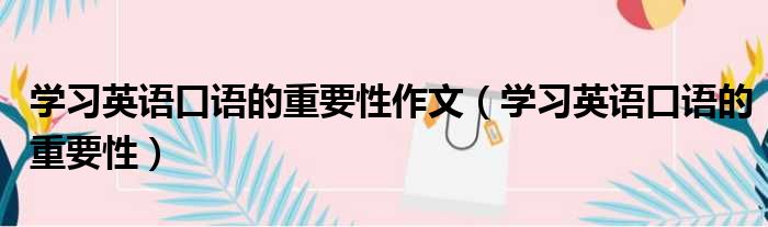 学习英语口语的重要性作文(学习英语口语的重要性)