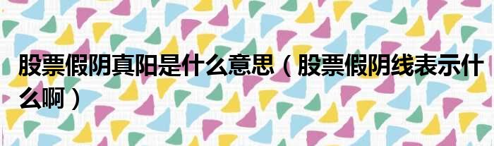股票假阴真阳是什么意思(股票假阴线表示什么啊)