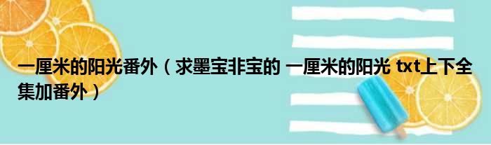 一厘米的阳光番外(求墨宝非宝的 一厘米的阳光 txt上下全集加番外)