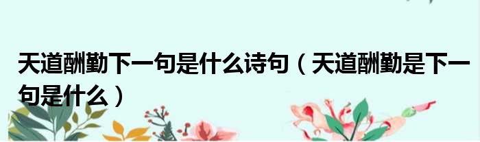 天道酬勤下一句是什么诗句(天道酬勤是下一句是什么)