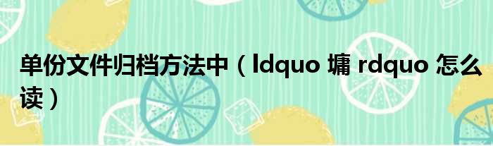 单份文件归档方法中(ldquo 墉 rdquo 怎么读)