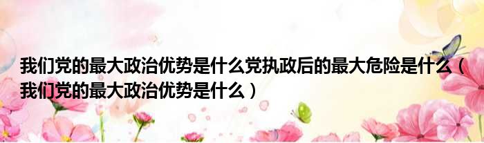 我们党的最大政治优势是什么党执政后的最大危险是什么(我们党的最大政治优势是什么)