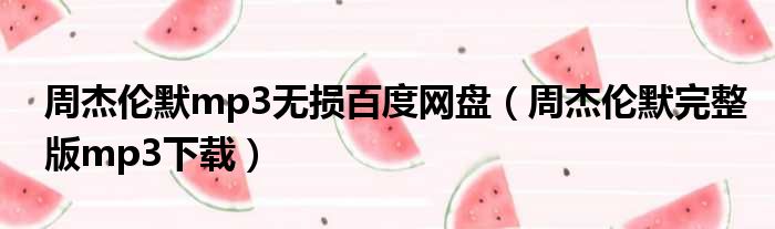 周杰伦默mp3无损百度网盘(周杰伦默完整版mp3下载)