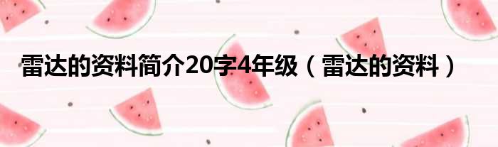 雷达的资料简介20字4年级(雷达的资料)