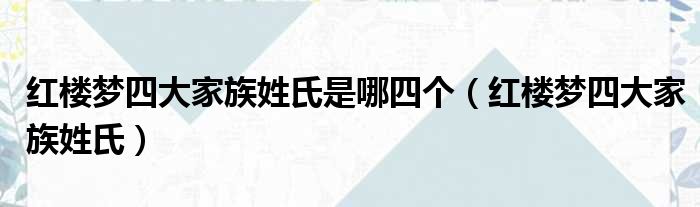 红楼梦四大家族姓氏是哪四个(红楼梦四大家族姓氏)
