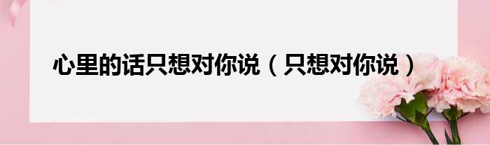 大家好,小东方来为大家解答以上的问题。心里的话只想对你说,只想对你说这个很多人还不知道,现在让我们一起来看看吧!