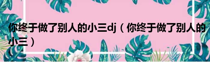 你终于做了别人的小三dj(你终于做了别人的小三)