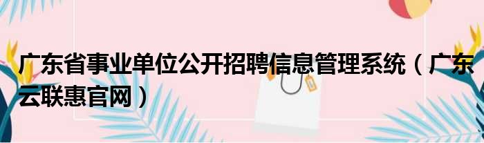 广东省事业单位公开招聘信息管理系统(广东云联惠官网)
