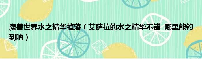魔兽世界水之精华掉落(艾萨拉的水之精华不错 哪里能钓到呐)