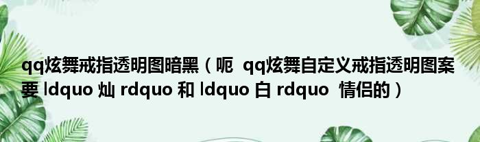 qq炫舞戒指透明图暗黑(呃 qq炫舞自定义戒指透明图案 要 ldquo 灿 rdquo 和 ldquo 白 rdquo 情侣的)