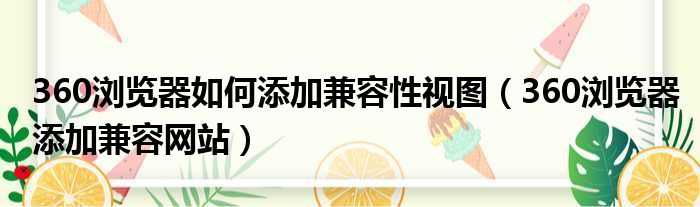 360浏览器如何添加兼容性视图(360浏览器添加兼容网站)