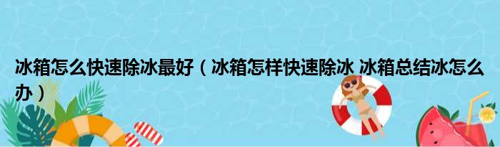冰箱怎么快速除冰最好(冰箱怎样快速除冰 冰箱总结冰怎么办)