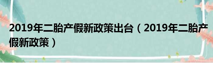2019年二胎产假新政策出台(2019年二胎产假新政策)