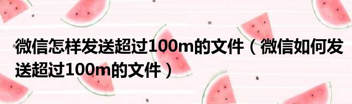 微信怎样发送超过100m的文件(微信如何发送超过100m的文件)