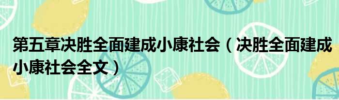 第五章决胜全面建成小康社会(决胜全面建成小康社会全文)