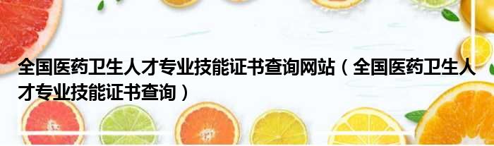 全国医药卫生人才专业技能证书查询网站(全国医药卫生人才专业技能证书查询)