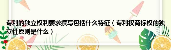 专利的独立权利要求撰写包括什么特征(专利权商标权的独立性原则是什么)