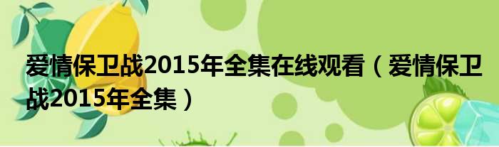 爱情保卫战2015年全集在线观看(爱情保卫战2015年全集)