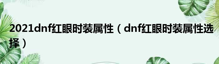 2021dnf红眼时装属性(dnf红眼时装属性选择)