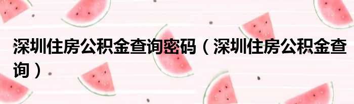 深圳住房公积金查询密码(深圳住房公积金查询)