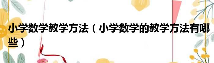 大家好,小东方来为大家解答以上的问题。小学数学教学方法,小学数学的教学方法有哪些这个很多人还不知道,现在让我们一起来看看吧!