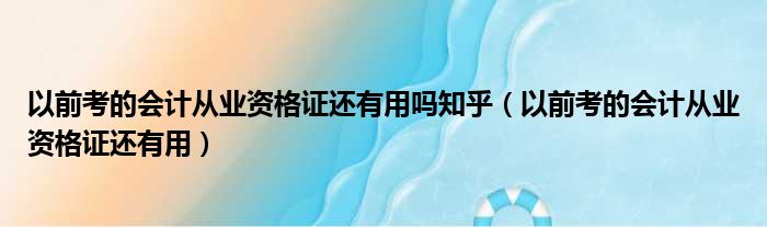 以前考的会计从业资格证还有用吗知乎(以前考的会计从业资格证还有用)