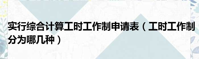 实行综合计算工时工作制申请表(工时工作制分为哪几种)