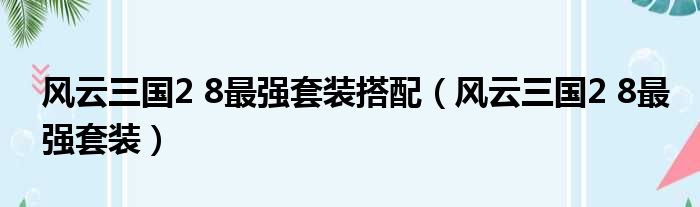 风云三国2 8最强套装搭配(风云三国2 8最强套装)