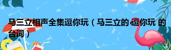 马三立相声全集逗你玩(马三立的 逗你玩 的台词)