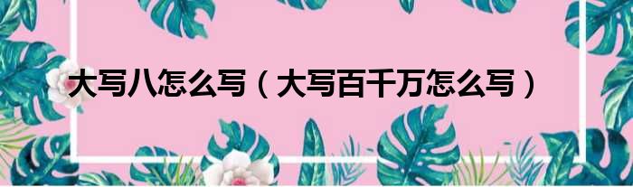 大家好,小东方来为大家解答以上的问题。大写八怎么写,大写百千万怎么写这个很多人还不知道,现在让我们一起来看看吧!