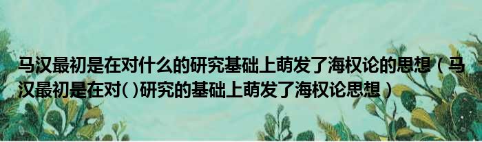 马汉最初是在对什么的研究基础上萌发了海权论的思想(马汉最初是在对( )研究的基础上萌发了海权论思想)