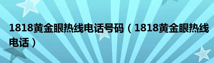 1818黄金眼热线电话号码(1818黄金眼热线电话)