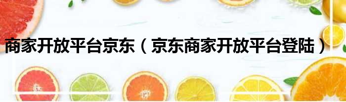 商家开放平台京东(京东商家开放平台登陆)