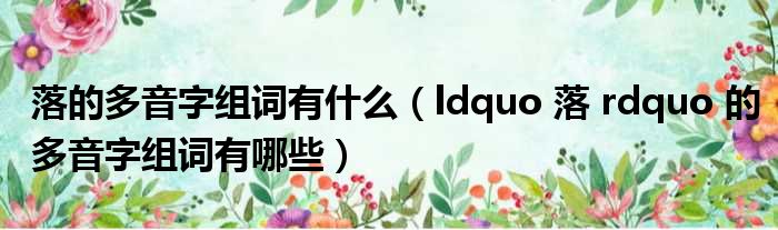 落的多音字组词有什么(ldquo 落 rdquo 的多音字组词有哪些)