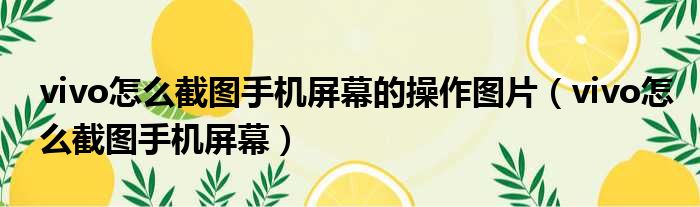 vivo怎么截图手机屏幕的操作图片(vivo怎么截图手机屏幕)