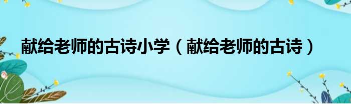 大家好,小东方来为大家解答以上的问题。献给老师的古诗小学,献给老师的古诗这个很多人还不知道,现在让我们一起来看看吧!