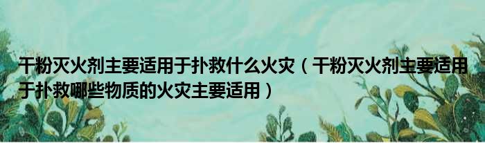 干粉灭火剂主要适用于扑救什么火灾(干粉灭火剂主要适用于扑救哪些物质的火灾主要适用)