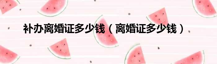 补办离婚证多少钱(离婚证多少钱)