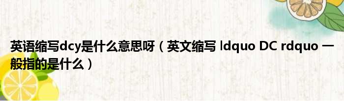 英语缩写dcy是什么意思呀(英文缩写 ldquo DC rdquo 一般指的是什么)