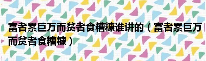 富者累巨万而贫者食糟糠谁讲的(富者累巨万而贫者食糟糠)