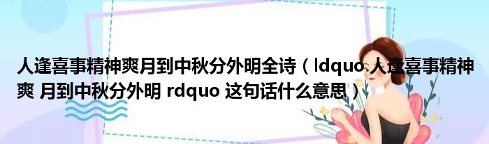 人逢喜事精神爽月到中秋分外明全诗(ldquo 人逢喜事精神爽 月到中秋分外明 rdquo 这句话什么意思)