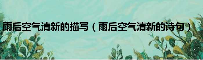 大家好,小东方来为大家解答以上的问题。雨后空气清新的描写,雨后空气清新的诗句这个很多人还不知道,现在让我们一起来看看吧!