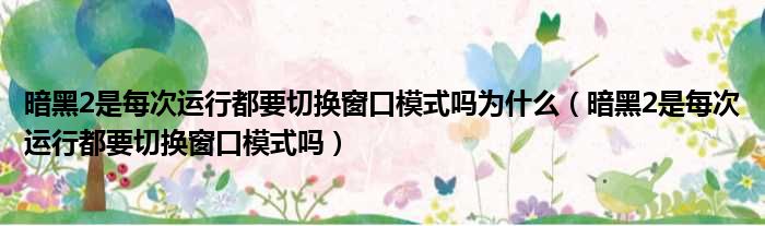 暗黑2是每次运行都要切换窗口模式吗为什么(暗黑2是每次运行都要切换窗口模式吗)