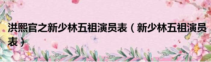 大家好,小东方来为大家解答以上的问题。洪熙官之新少林五祖演员表,新少林五祖演员表这个很多人还不知道,现在让我们一起来看看吧!