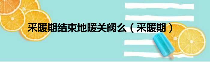 大家好,小东方来为大家解答以上的问题。采暖期结束地暖关阀么,采暖期这个很多人还不知道,现在让我们一起来看看吧!