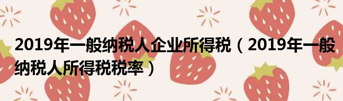 2019年一般纳税人企业所得税(2019年一般纳税人所得税税率)
